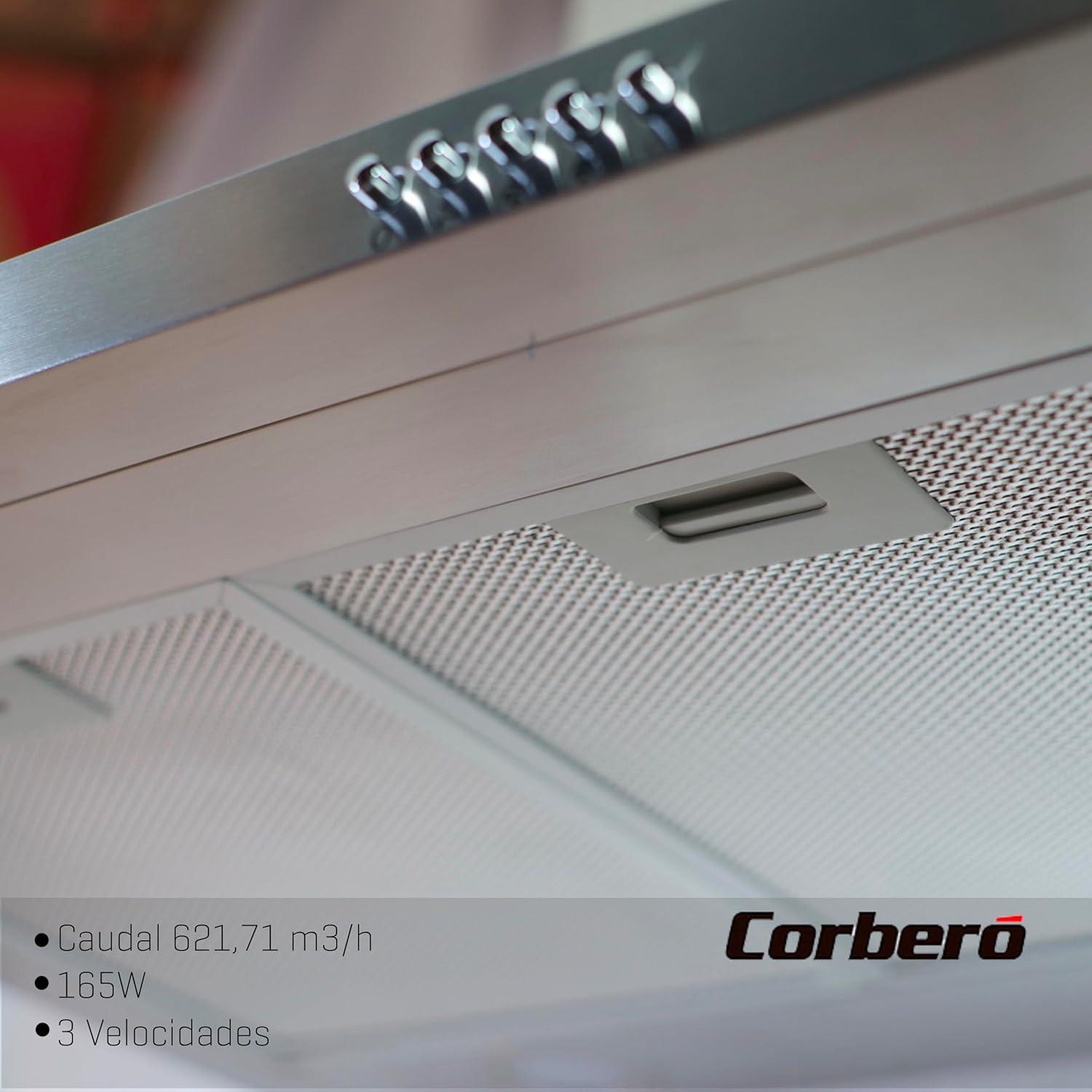 Campana Decorativa Pirámide Inox Corberó 60 cm Caudal 621,71 m3/h 3 Velocidades 2 X Filtro de Aluminio Eficiencia Energética A,