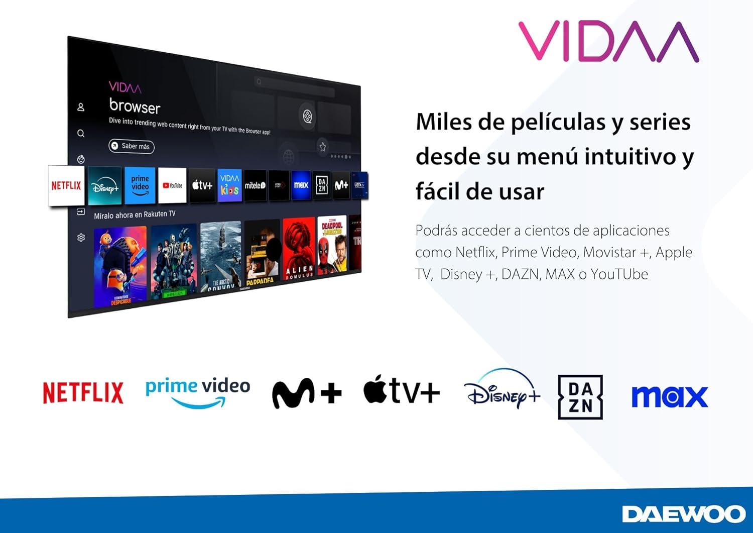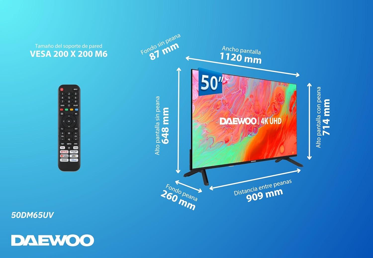 TV Daewoo 2025 50" - Smart TV 4K Ultra HD HDR 3840 x 2160, Dolby Vision, Diseño sin Marcos, Dolby Audio [Clase de eficiencia energética E]