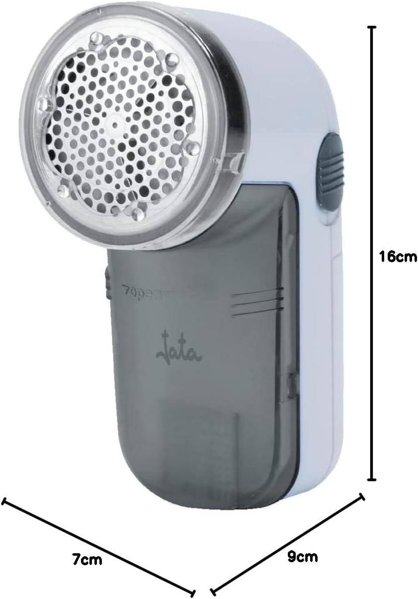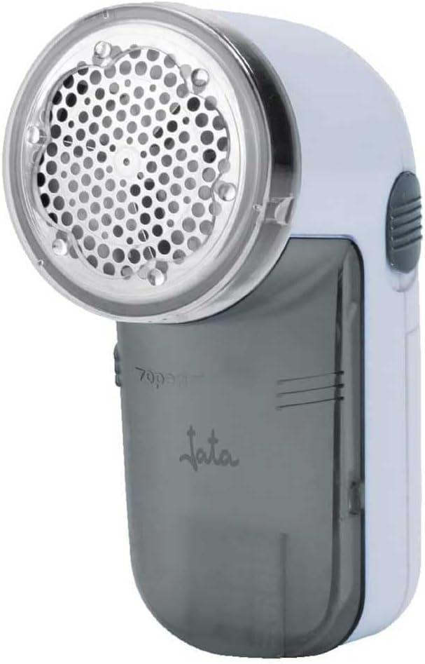Quitapelusas Jata Cuchillas de Acero Inoxidable Diámetro 5 cm Contenedor de Pelusas Desmontable con Accesorios Cepillo para Limpieza y Para Nivel de Rasurado Alto, Color Blanco Y Azul