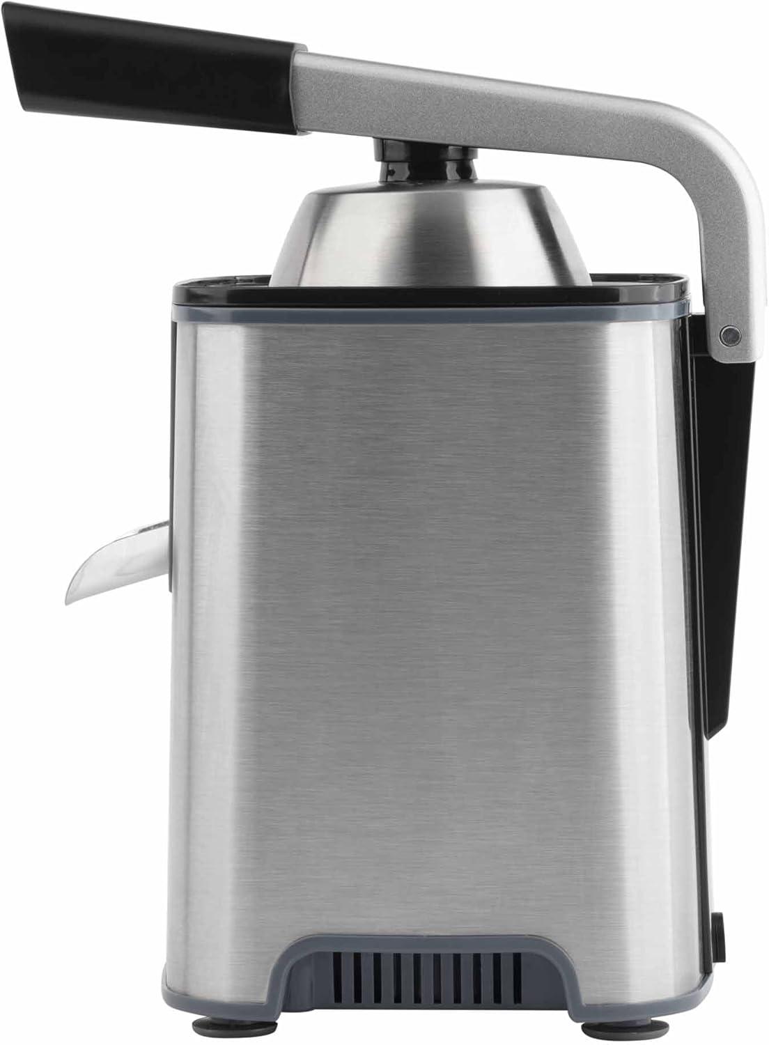 Exprimidor de Naranjas jata Electrico 600 W. Con brazo. Doble cono para todo tipo de frutas. Desmontable. Fácil limpieza. Silencioso. Cuerpo acero inox.