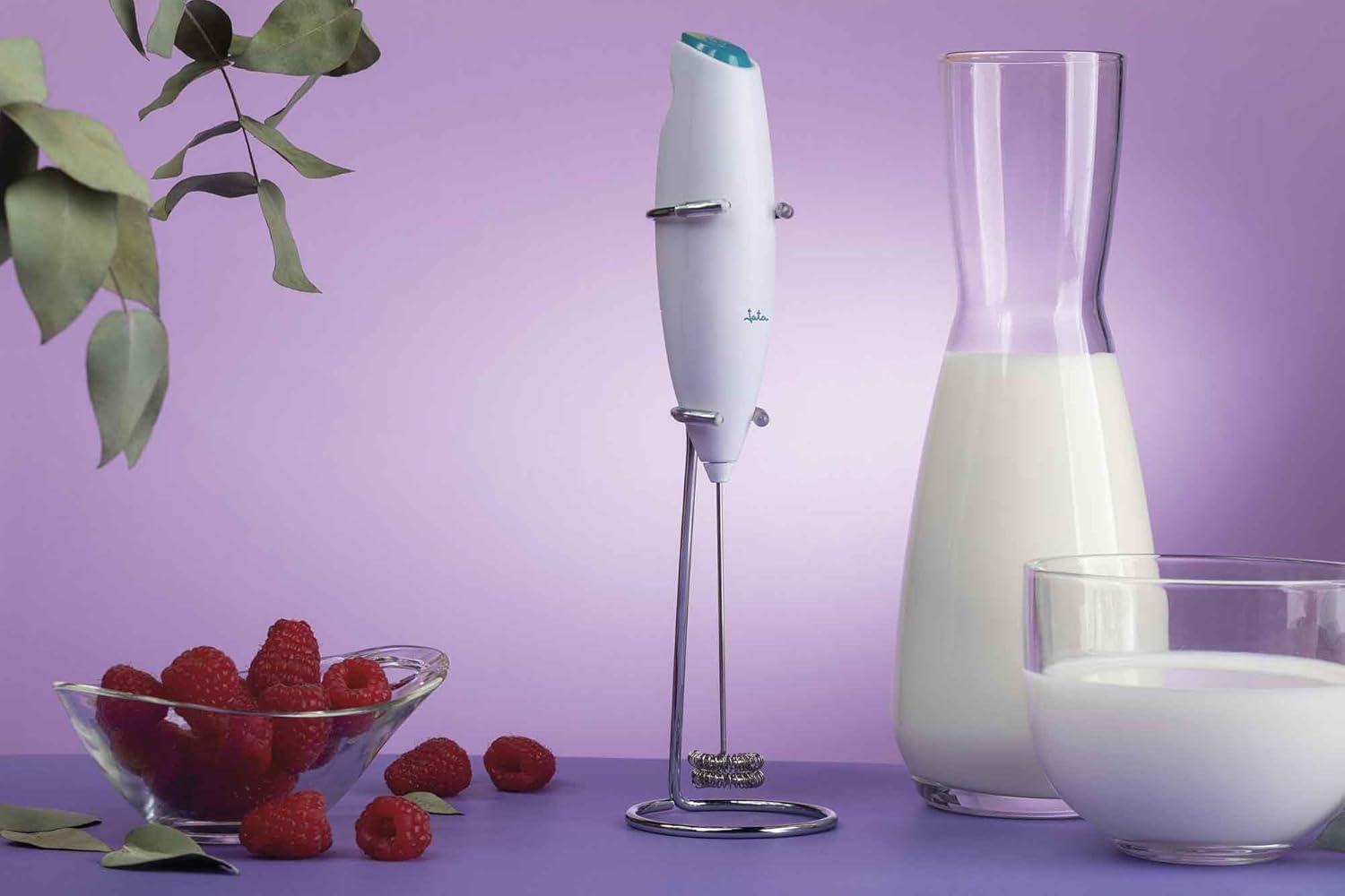 Espumador Leche Electrico de Mano Jata Batidor Leche Espuma con Soporte. Ideal para Capuchino, Matcha, Batidos de Proteínas, Chocolate. Funciona con Pilas