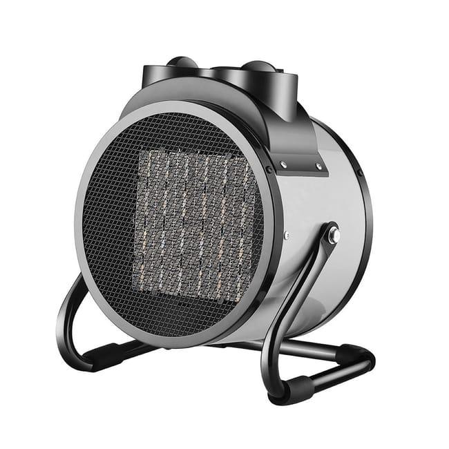 Termoventilador Cerámico PTC Industrial de la serie GABON en color NEGRO. Realizado en metal, placas cerámicas y policarbonato. Equipado con 3000 watios de potencia y TERMOSTATO REGULABLE DE SEGURIDAD, permitiendo ajustar entre tres potencias de calefacción, 1000 watios, 2000 watios y 3000 watios. Distribuye el aire caliente de forma instantánea y homogénea por toda la estancia gracias a su función ventilador, con sistema de seguridad de protección contra sobrecalentamiento apagándose automáticamente cuando alcanza la temperatura seleccionada y rejilla de protección. Se presenta con un diseño muy original y moderno, nos permite calentar garajes, naves, trasteros, zonas de trabajo y cualquier estancia de su hogar con gran eficiencia y de forma segura por medio de su elemento calefactor de cerámica, sin gases, líquidos ni olores. Tiene unas dimensiones de 30x24,5x21 centímetros.