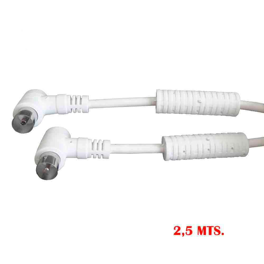 PROLONGACIÓN TV-VIDEO ACODADA CON FILTRO, 9.5mm - 2,5m, 75 OHM, COLOR BLANCO (ENVASADA)