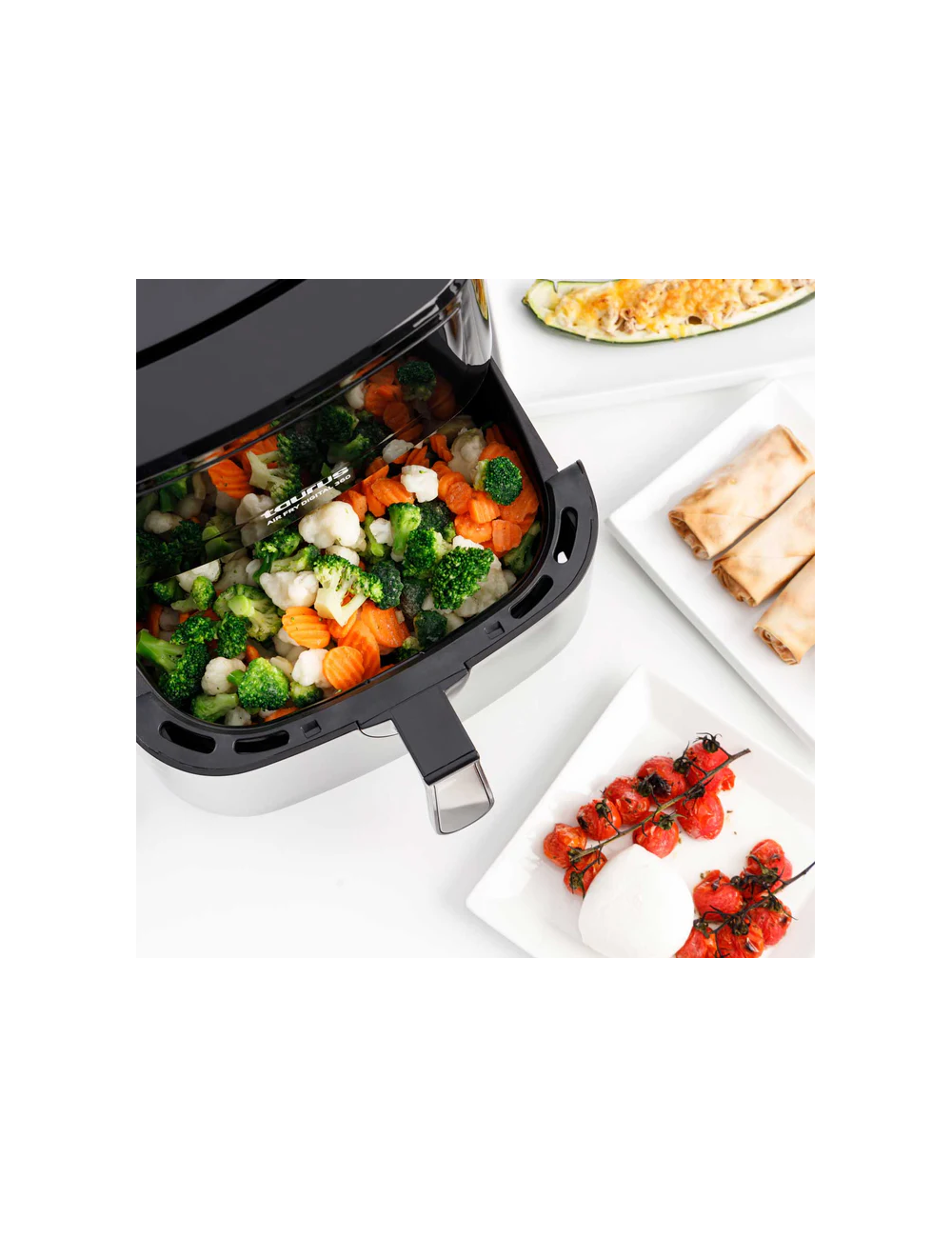 - Su rango de temperatura ajustable de 50 a 200°C la hacen increíblemente versátil, pudiendo cocinar una amplia variedad de platos, desde patatas fritas hasta pollo asado, verduras, postres y mucho más.