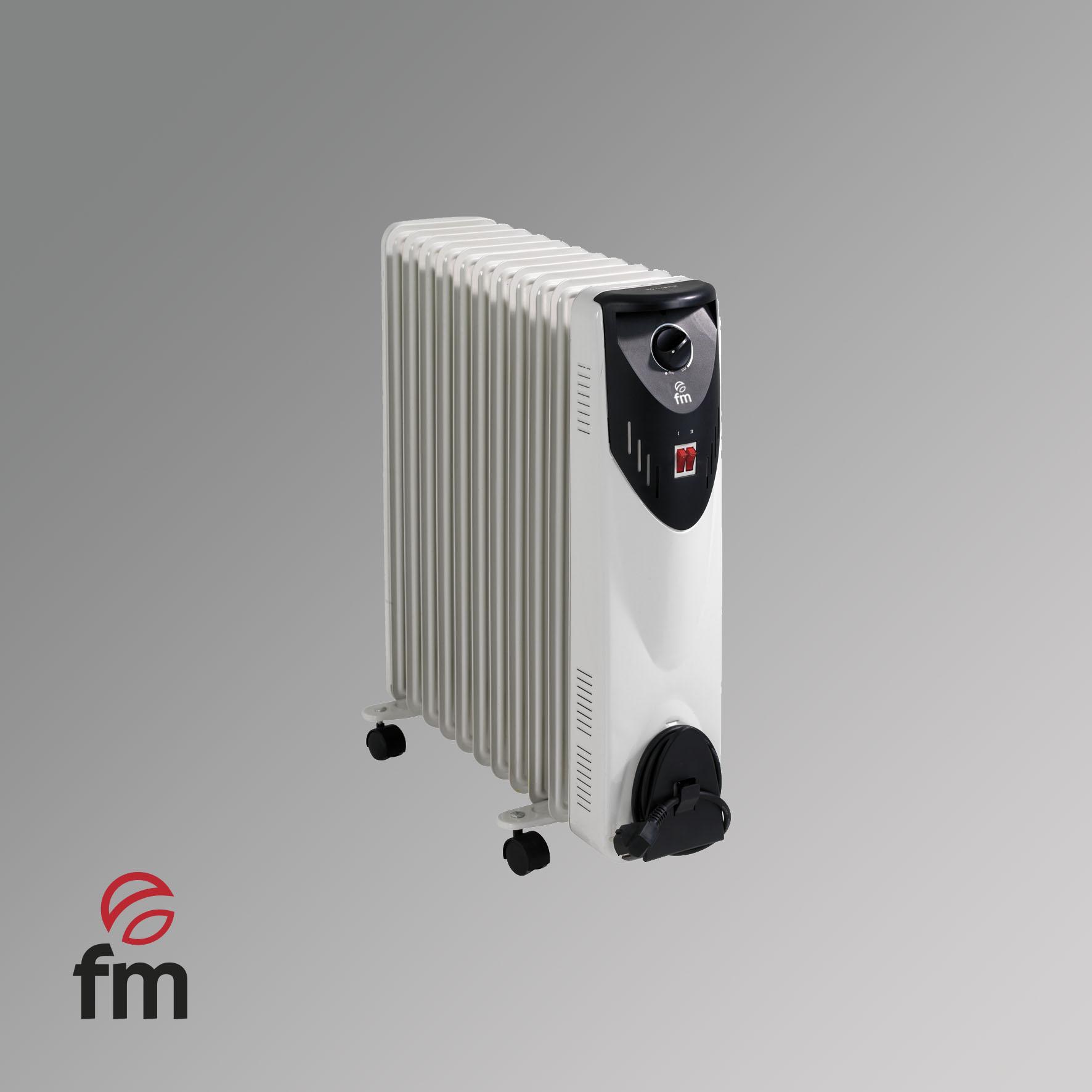 Radiador Aceite FM 2500 W, 11 Elementos, Termostato Seguridad, Recogecables