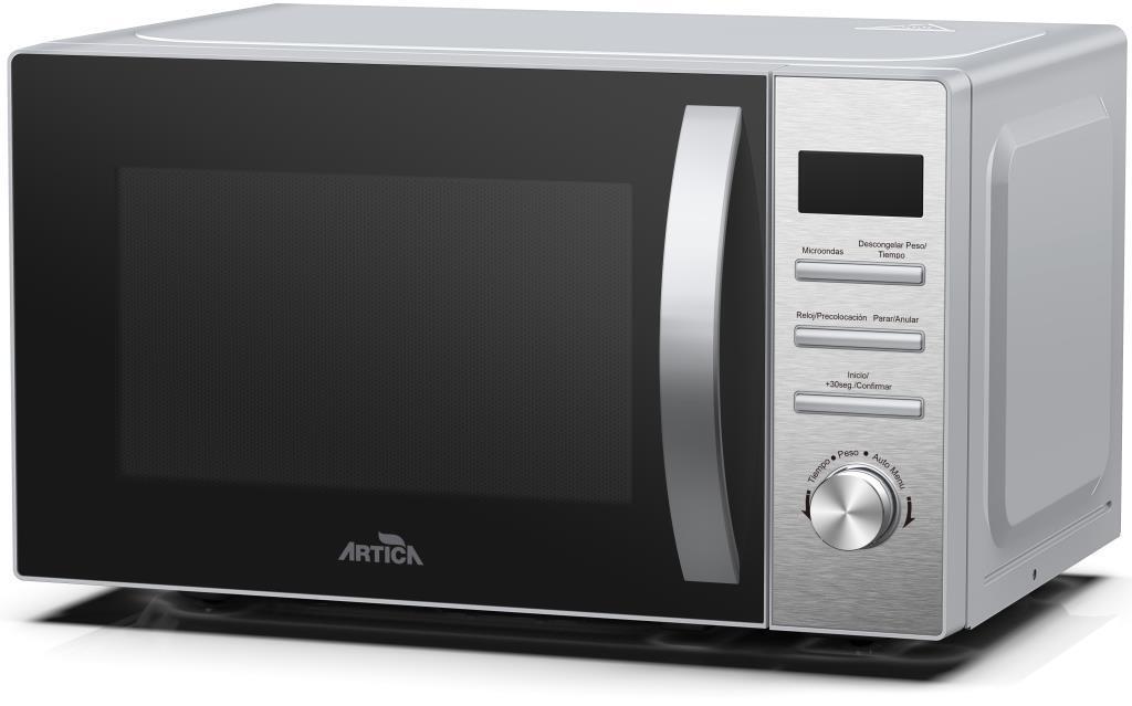 El microondas Artica AMW2042DX combina diseño y funcionalidad, ideal para quienes buscan eficiencia en la cocina. Con 800 W de potencia y una capacidad de 20 litros, este microondas permite calentar y cocinar alimentos de manera rápida y uniforme. Incluye programas automáticos, lo cual facilita la preparación de distintos tipos de platos, ahorrando tiempo y esfuerzo. Su pantalla digital proporciona una interfaz fácil de usar, permitiendo ajustar el tiempo y la potencia de forma precisa. Su acabado en acero inoxidable no solo lo hace resistente, sino también fácil de limpiar y elegante, adaptándose perfectamente a cocinas modernas. Con este modelo, disfrutarás de una herramienta práctica y duradera para preparar tus recetas favoritas.
