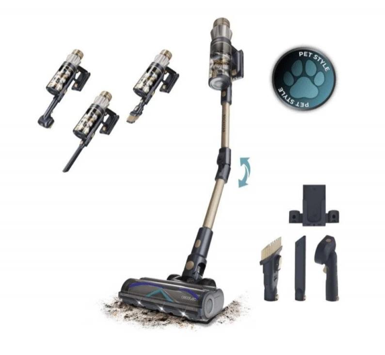 Conga Aspirador escoba sin cables con 600 W y 160 AW de potencia de succión. 40 kPa. Modo Auto. Cepillo para animales y tubo flexible. Limpia hasta 140 m2 sin parones en modo Eco.