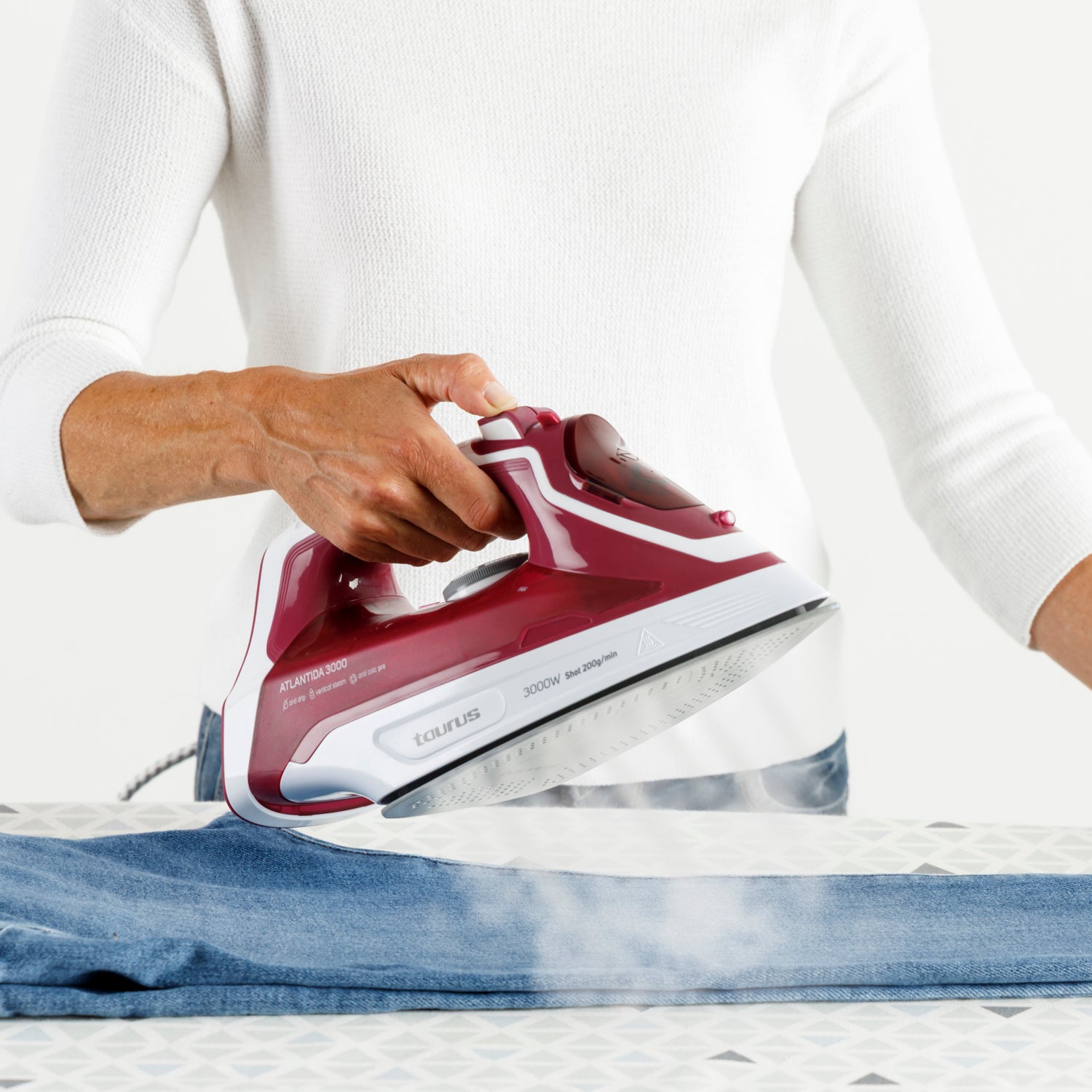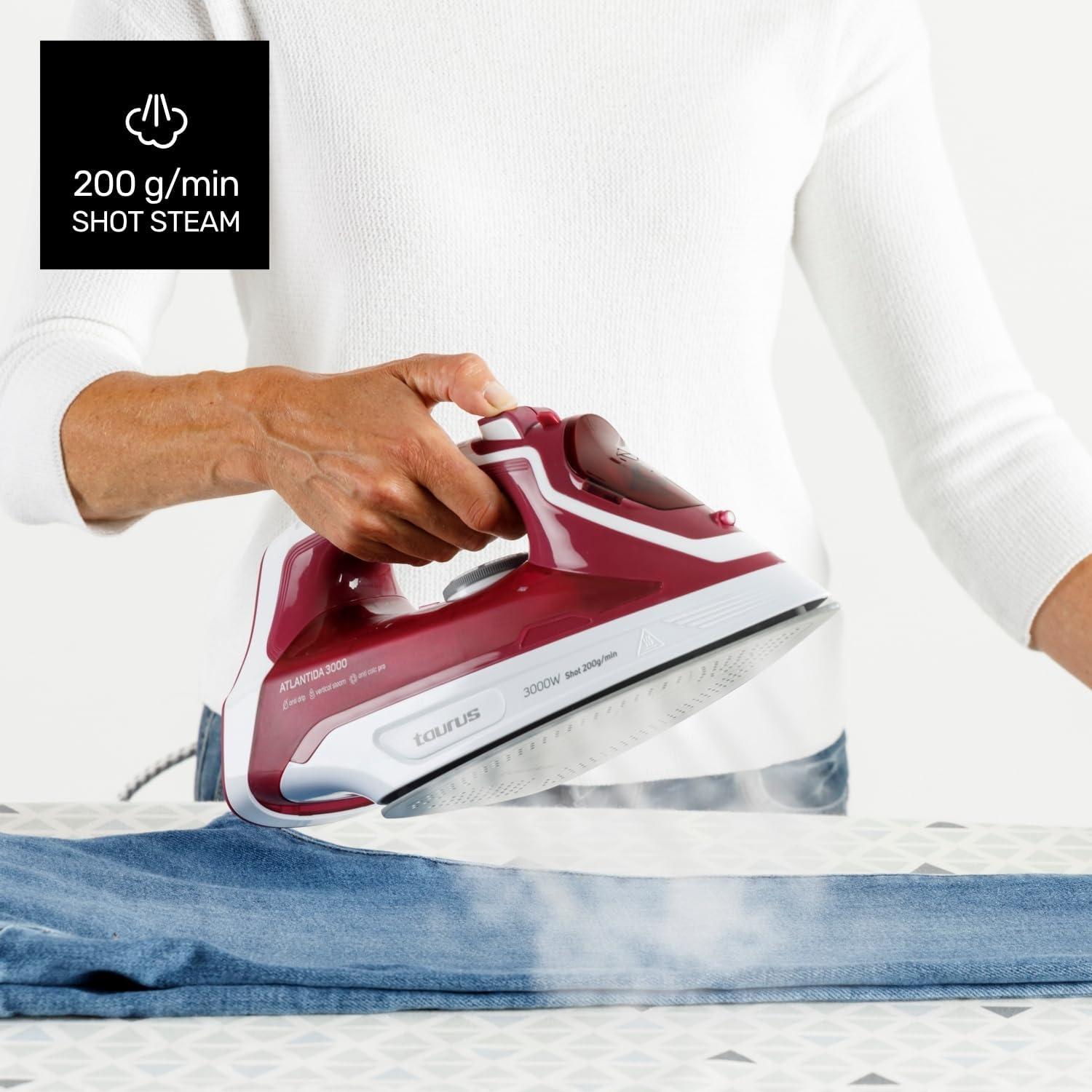 Plancha de vapor taurus 3000W. Golpe vapor 200g/min. Vapor constante 45g/min. Cerámica. Función spray. Doble sistema antical. Auto-limpieza. Antigoteo.