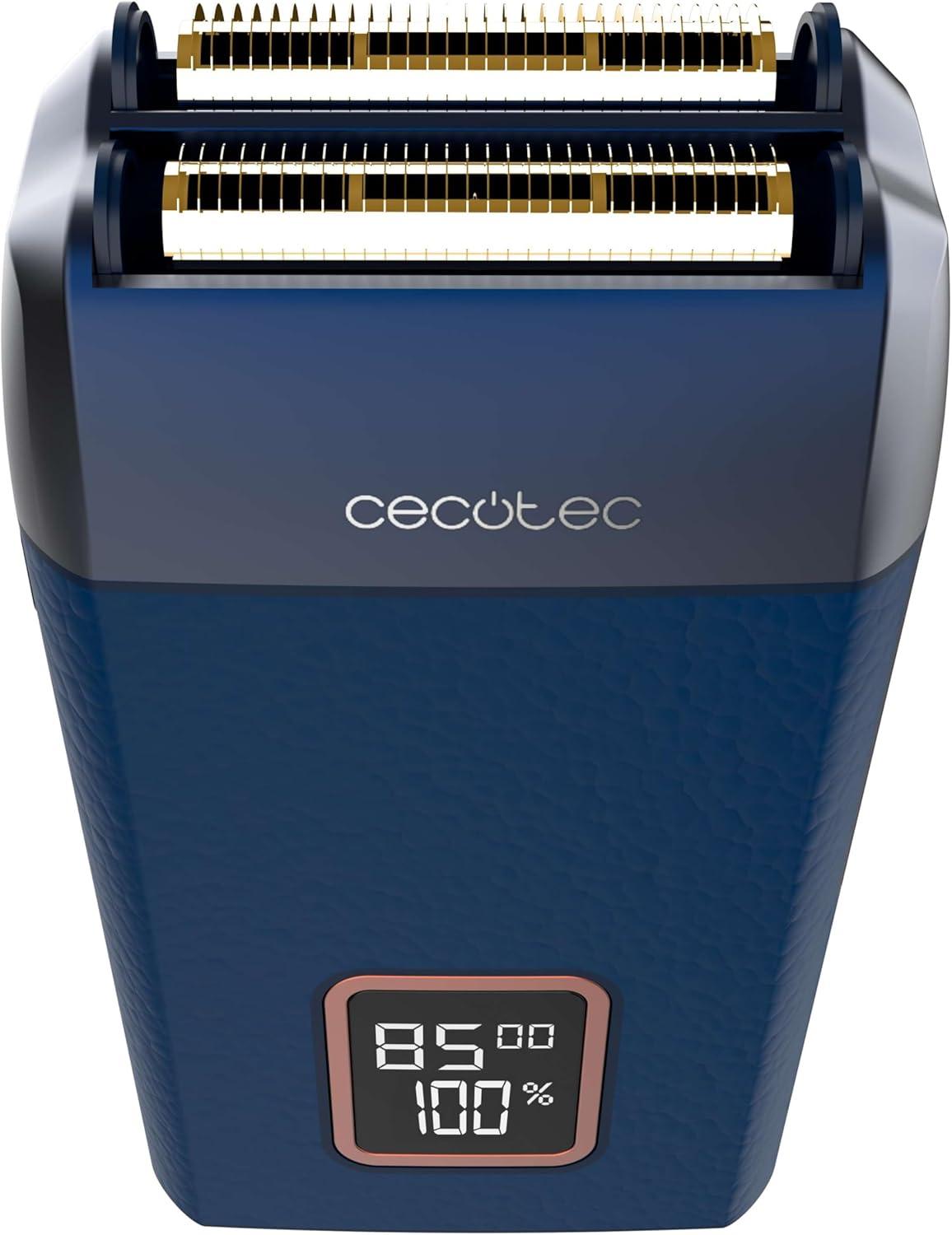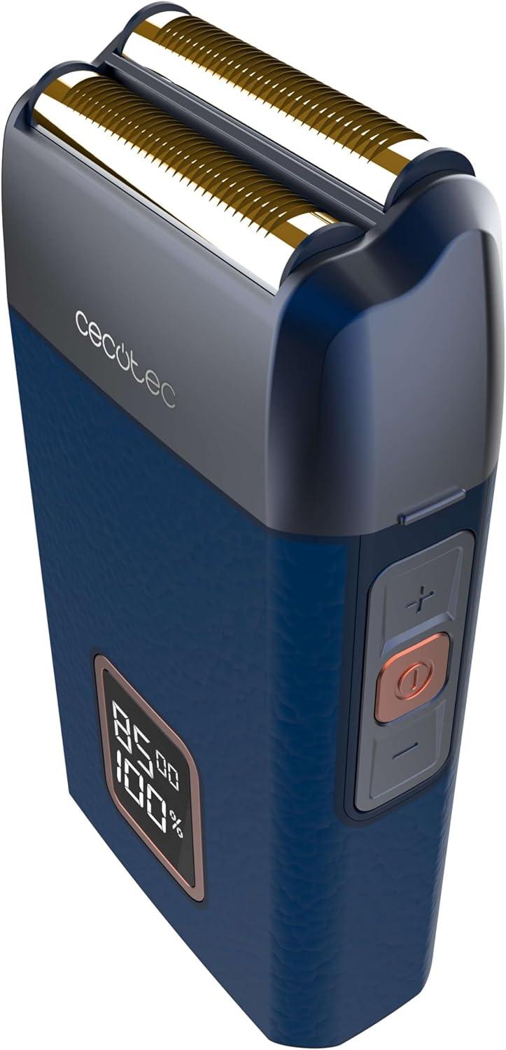 Afeitadora Laminar con Cuerpo de Cuero Cecotec Motor 9000RPM, 3 Velocidades, Cuchillas de Titanio, Pantalla LED con% de Batería y RPM, Autonomía 2h, Tapa
