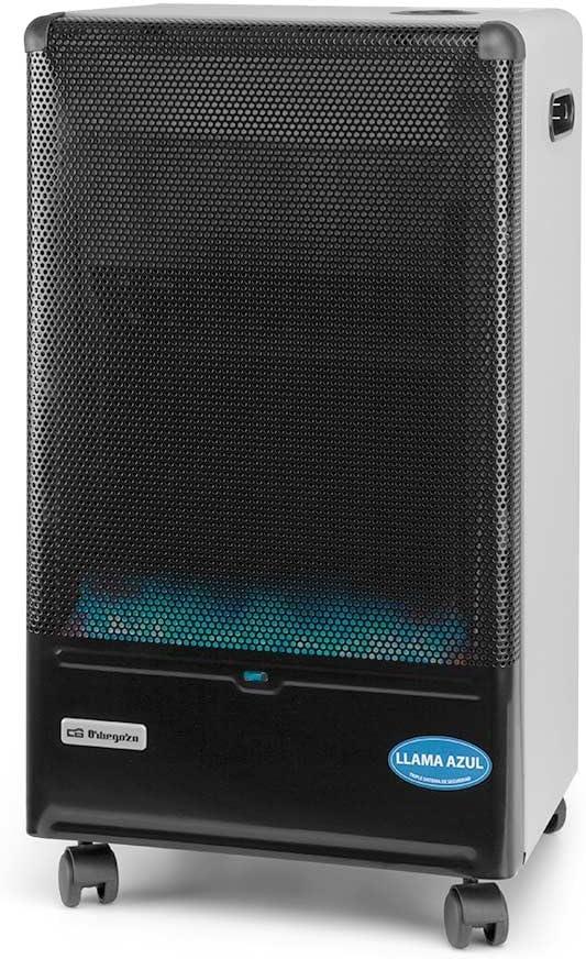 Estufa de gas butano Orbegozo 4200 W, tecnología de llama azul, Triple sistema de seguridad, apta para gas butano y propano, asa para transporte, ruedas pivotantes, color negro