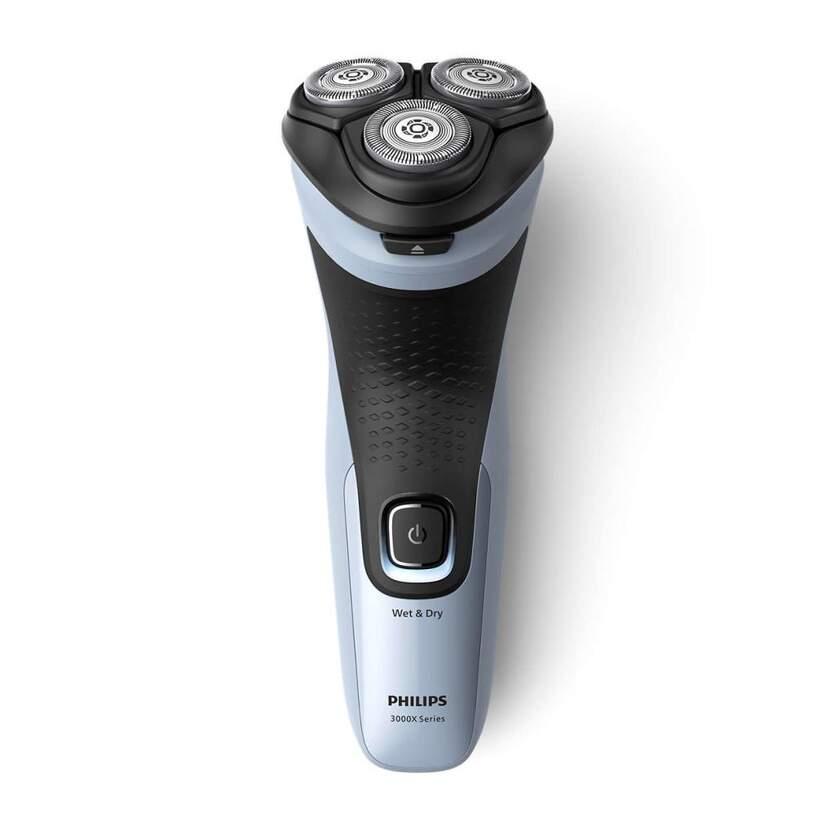 La afeitadora eléctrica Wet & Dry serie 3000X de Philips te ofrece un afeitado cómodo y apurado por una buena relación calidad-precio. Las 27 cuchillas autoafilables PowerCut, su uso en seco y en húmedo y su cortapatillas desplegable hacen que la afeitadora sea fácil de usar y siempre fiable.