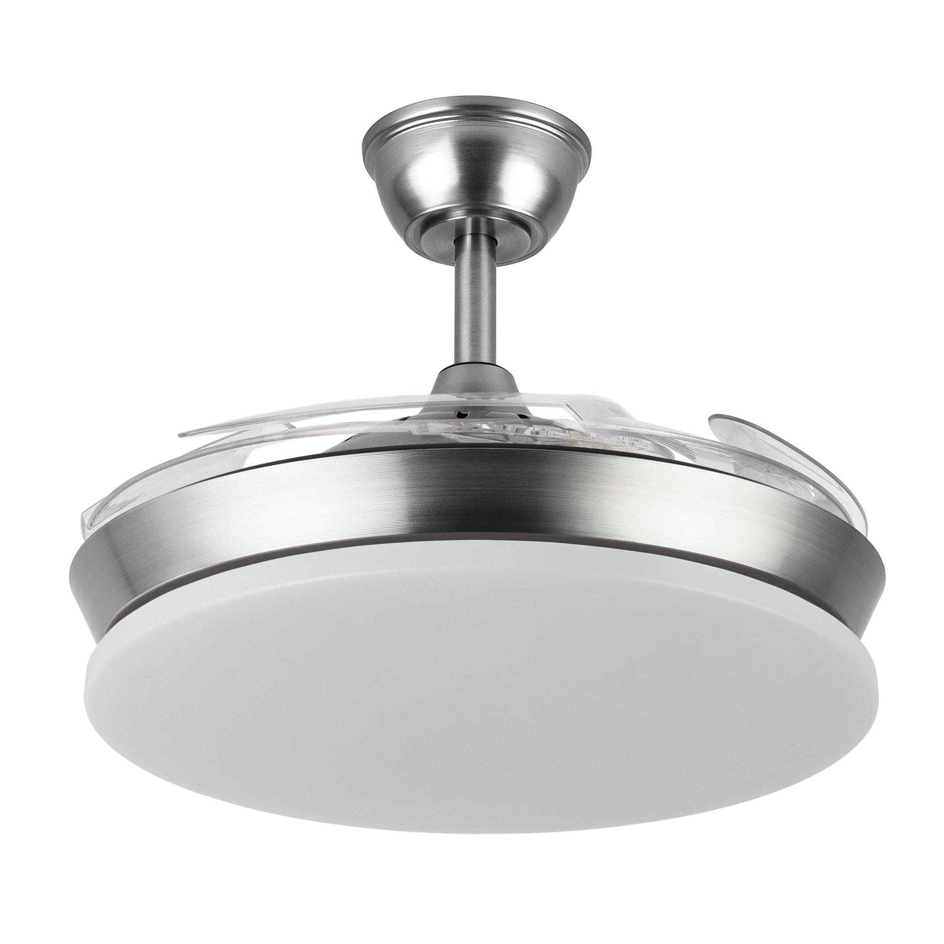 Ventilador Dc Tridente Mini 59w Niquel 4aspas Desp.91d 6980lm Reg.intensidad Remoto+temporizador+memoria 3000-4000-6000k