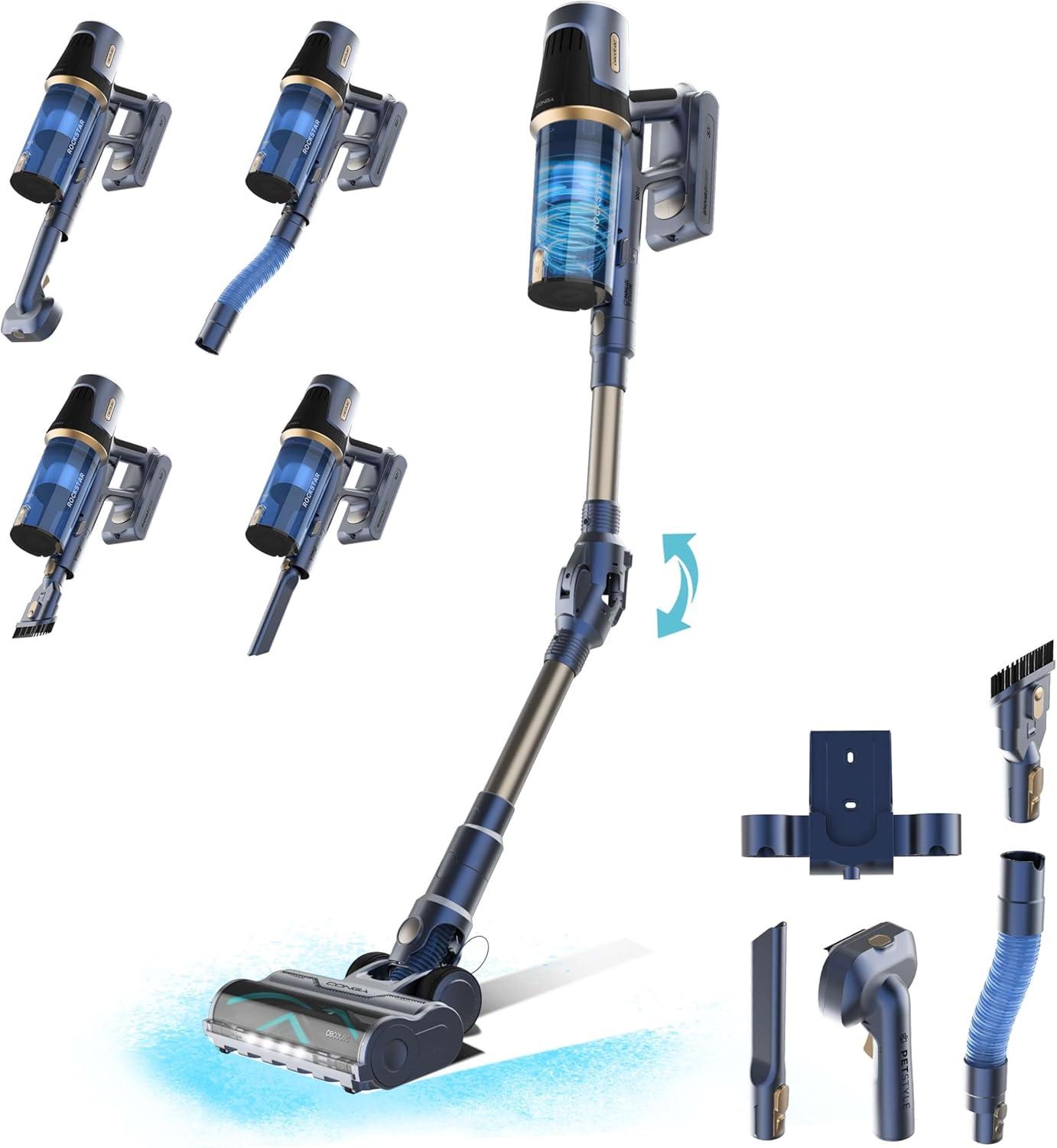 c Aspirador Escoba sin Cable Cecotec 500W, Potencia de Succión 150AW, Modo Auto, Cepillo para Animales y Tubo Flexible, Batería 33,6V, Limpia 140m2 en Modo Eco