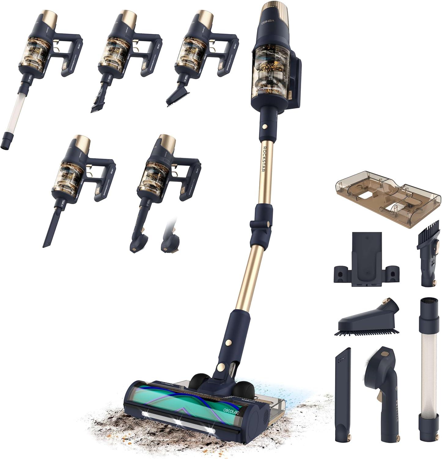 Cecotec Aspiradora Escoba sin Cable 300AW, 780W, Motor Alto Rendimiento, Cepillo Hairless XL, Autonomía 100mins en Modo Eco, Tubo Flex, Luz LED y Sistema de Fregado
