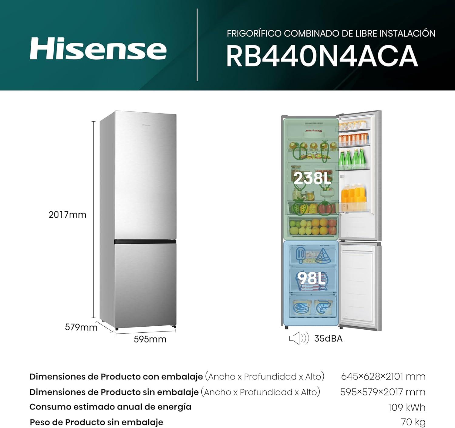 FRICOM. HISENSE 202x60x58 NF INOX clase a