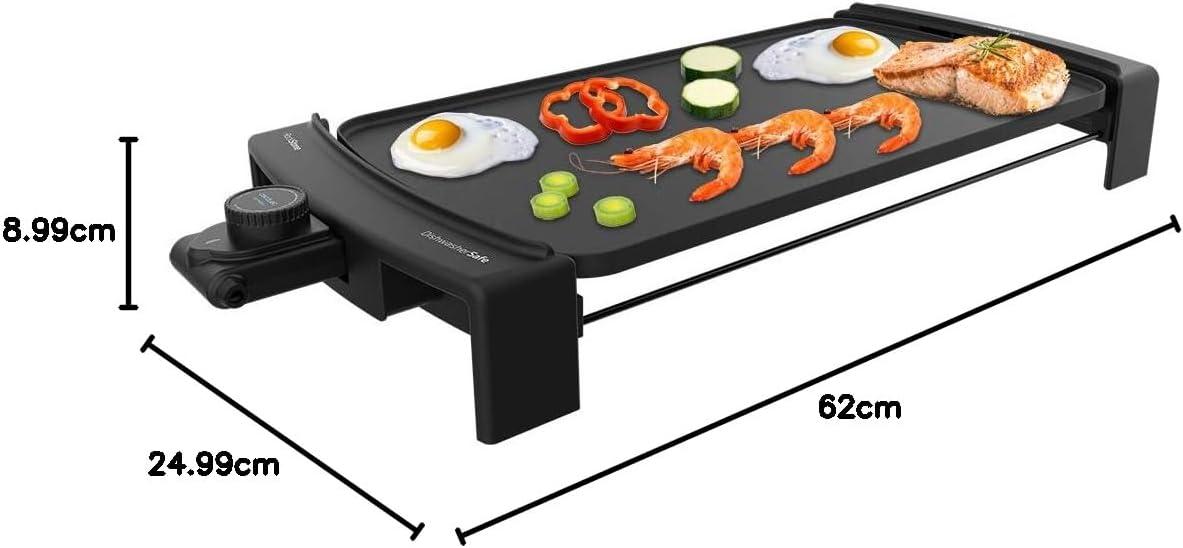 - Plancha de asar eléctrica de 2600 W de potencia para cocinar todo tipo de alimentos de forma rápida y precisa.