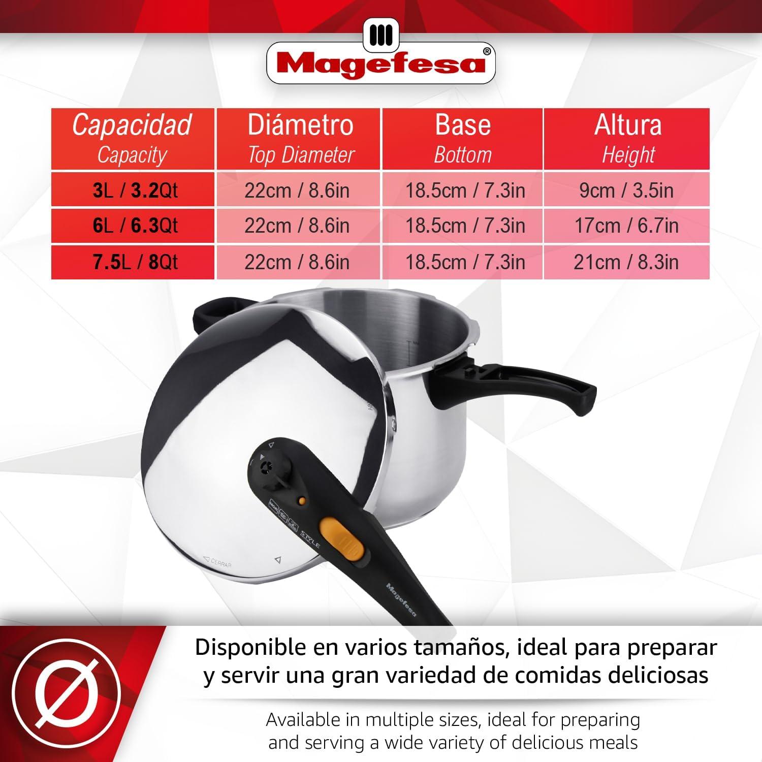 Olla Express Rápida 6L Magefesa Style - Acero Inoxidable 18/10, Cocina Sana, Fondo Termo-Difusor, Asas Laterales Termo-Resistentes, Inducción