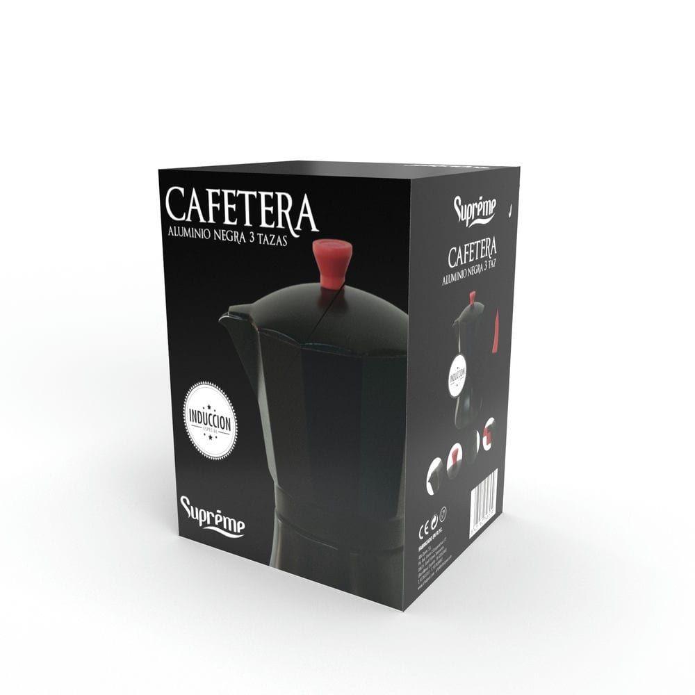 Más Información EAN 8425160349219 Presentación Caja Tazas 6 Tipo Inducción Unidades del envase 1 Material Aluminio Color Negro / Rojo Asa Silicona Inducción Sí Mango Silicona - Cafetera SUPREME con cuerpo de aluminio pulido.