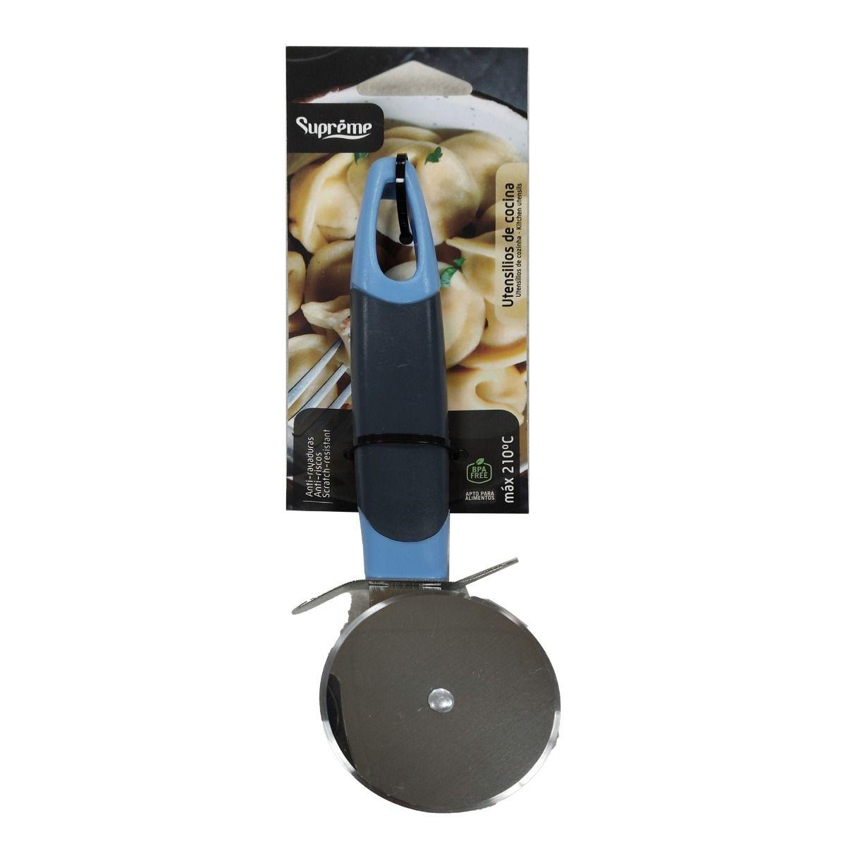 Más Información EAN 8425160368852 Unidades del envase 5 Material ABS/INOX Color Negro/Azul Longitud 19,5cm Mango ABS/Inoxidable - Cortador de pizzas Supreme.