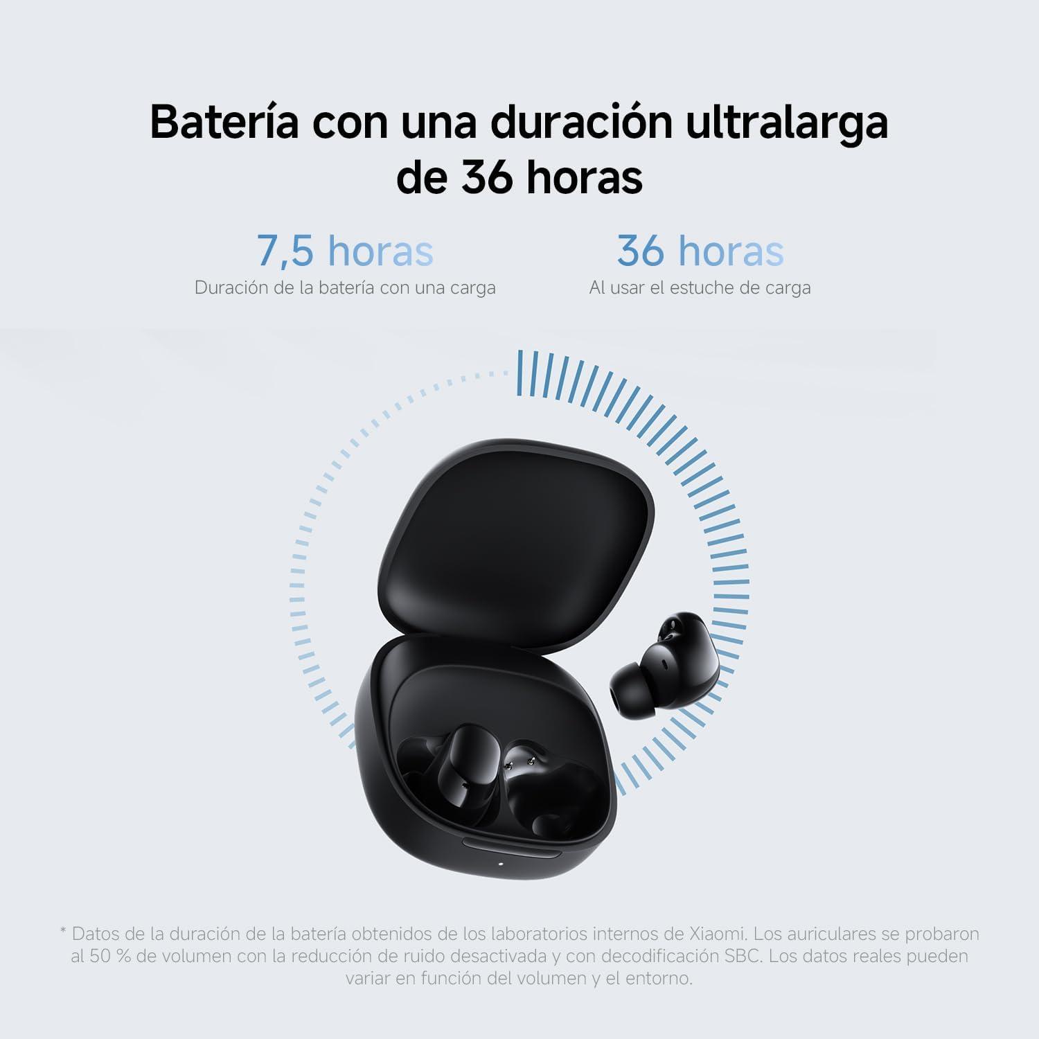 XIAOMI- Auriculares inalámbricos, cancelación de Ruido, Ligeros, hasta 36 Horas de autonomía, Bluetooth 5.4, Negro (Versión ES)