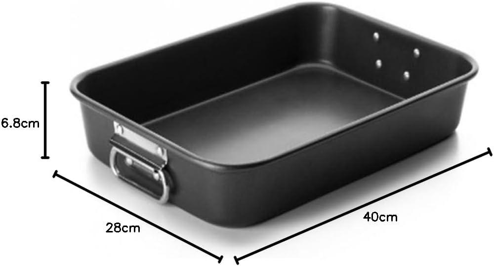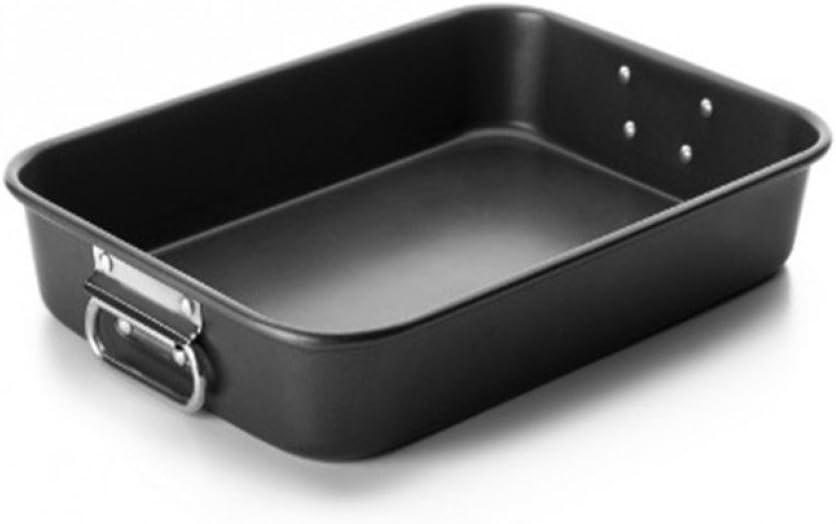 Rustidera chapa de acero con antiadherente asas metalicas inox 40 x 28 x 8 cm negra