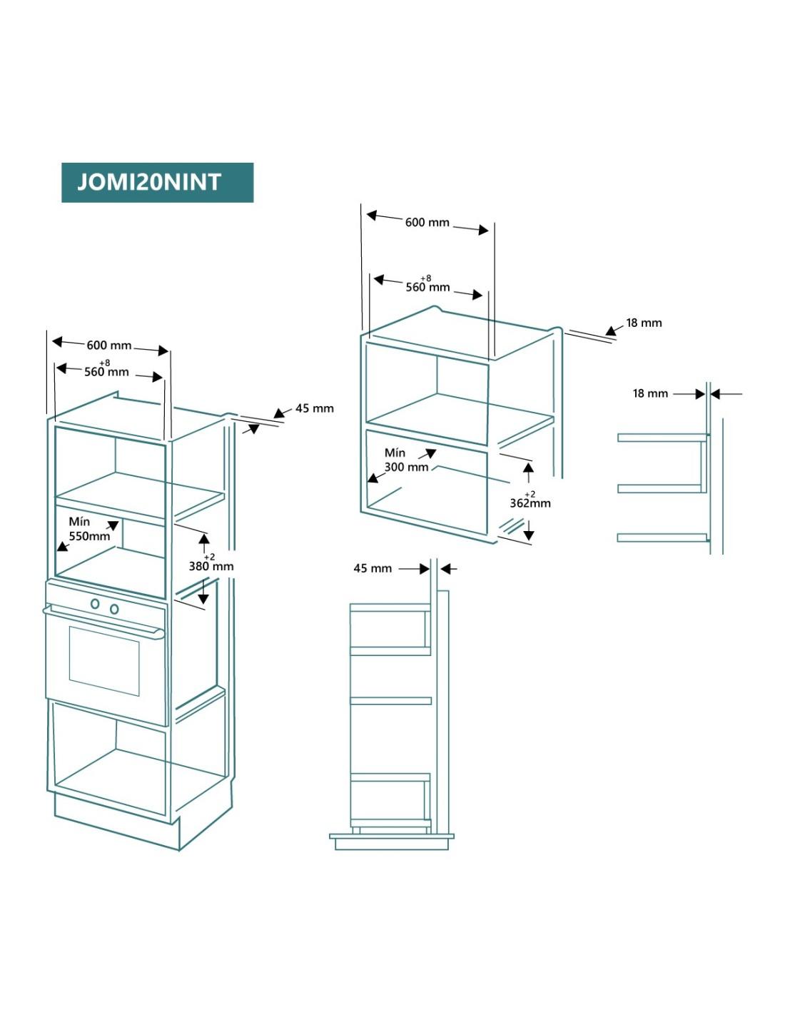 MICROONDAS JOHNSON ENCASTRE 20L 800W GRILL 1000W DISPLAY CRISTAL NEGRO