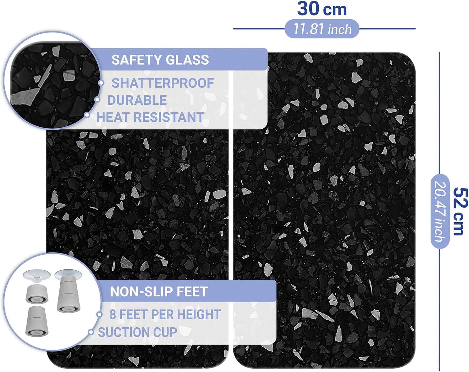 WENKO Placas protectoras para cocina Mod Terrazo, ajustable en altura para todo tipo de cocinas, tabla de cortar y protector contra salpicaduras, vidrio, 30 x 52 cm, juego de 2