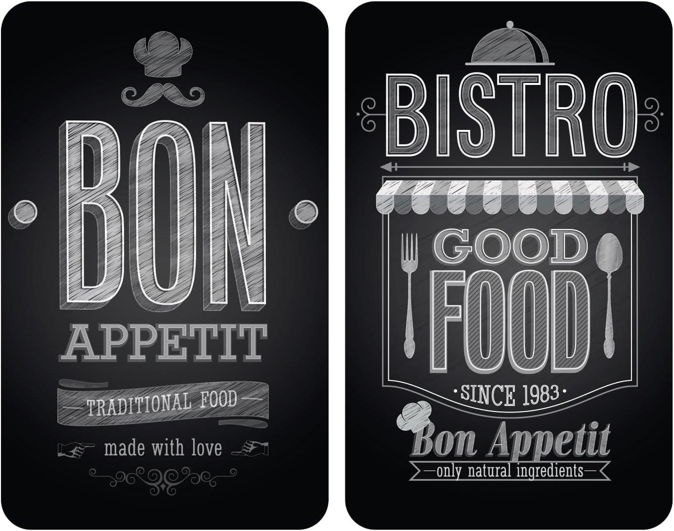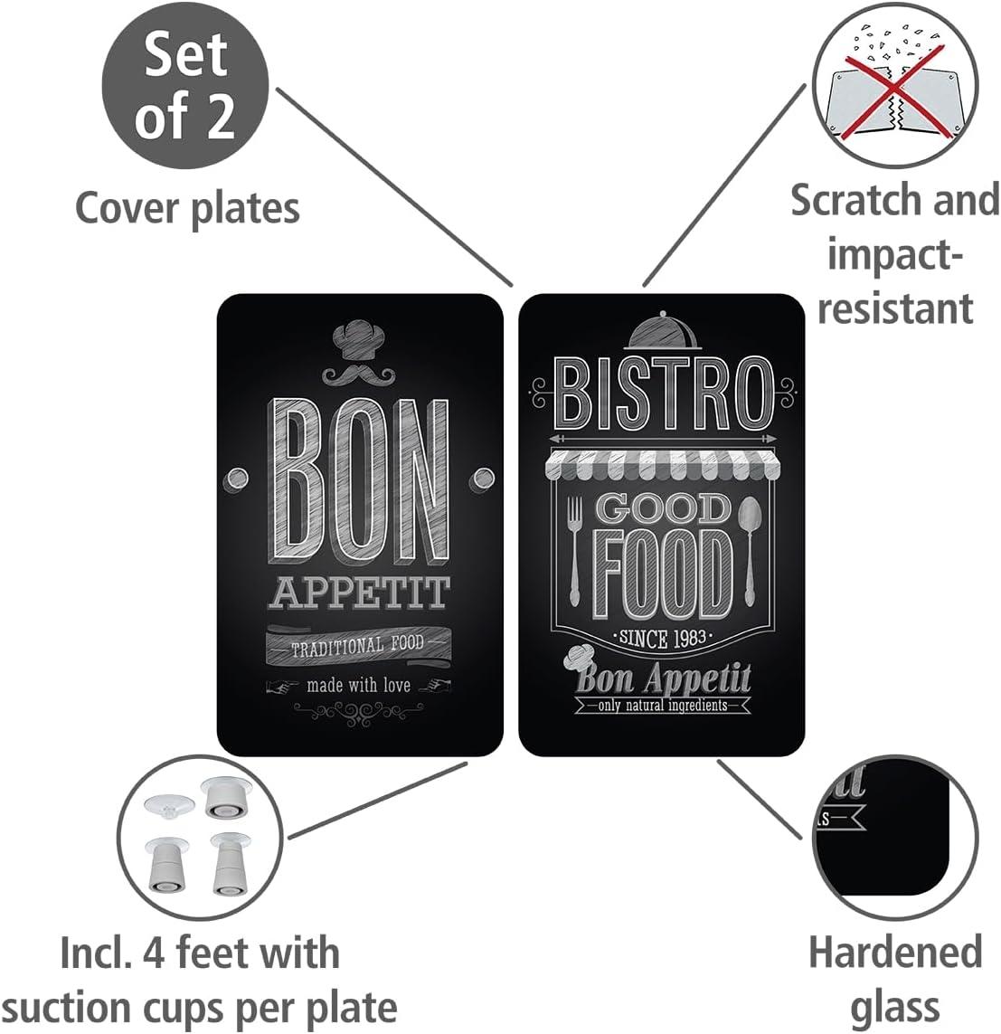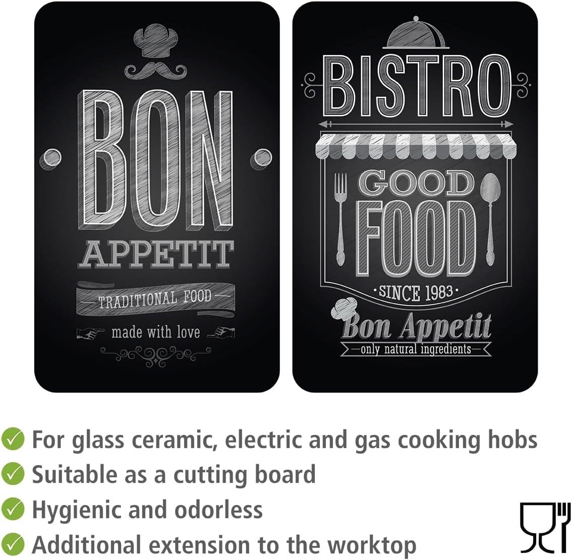 WENKO Placas protectoras para cocina Mod Bon Appetit, ajustable en altura para todo tipo de cocinas, tabla de cortar y protector contra salpicaduras, vidrio, 30 x 52 cm, juego de 2
