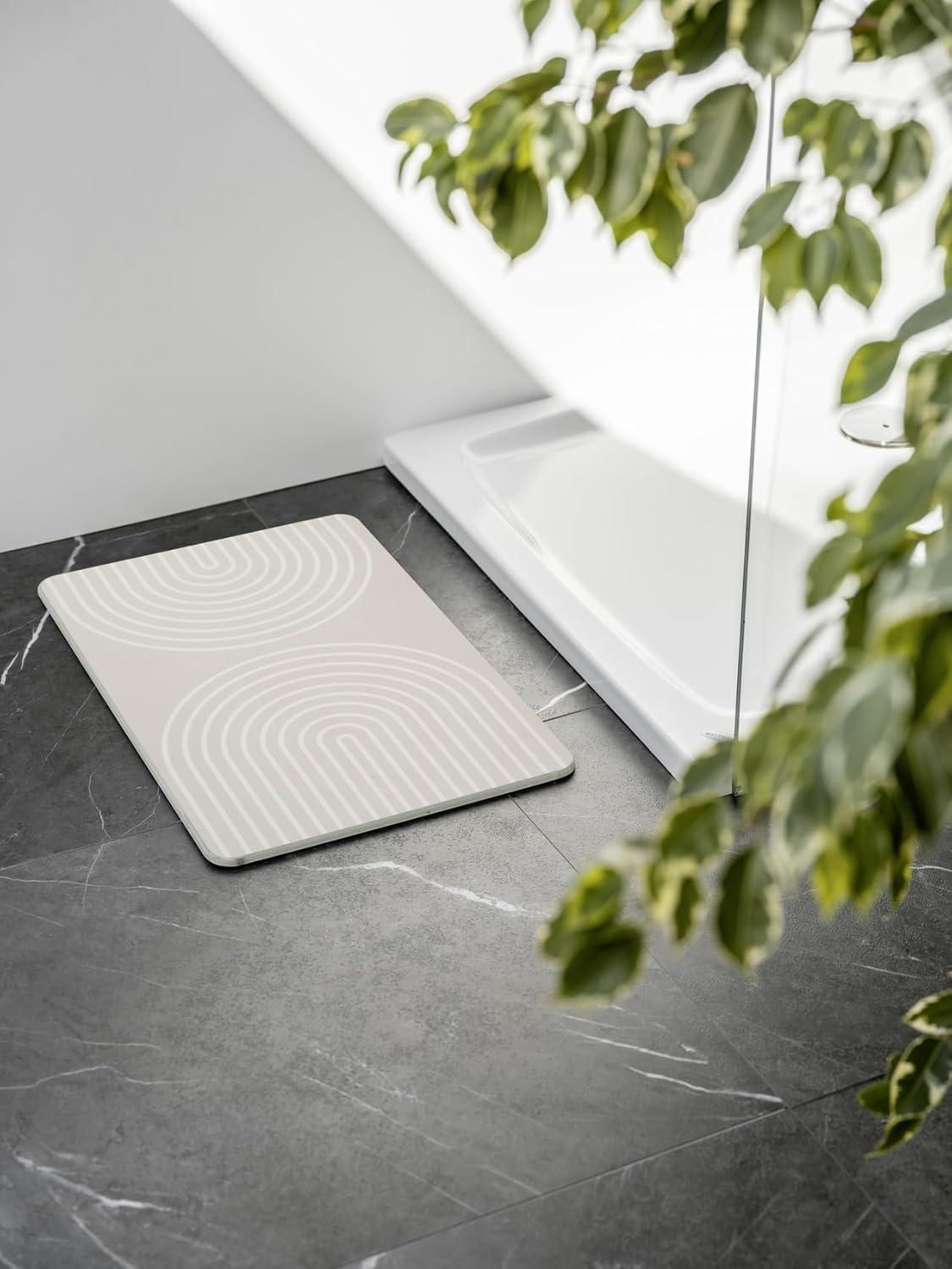 - Duradera: la moderna alfombra de baño está hecha de diatomita natural muy resistente (diatomita) y se puede limpiar si es necesario con el papel de lija incluido
